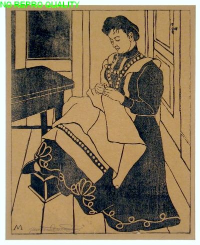 Zittende vrouw aan het handwerken