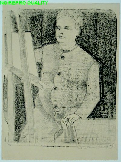 Zelfportret van kunstenaar voor de schildersezel