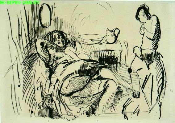 Liggende en staande vrouw