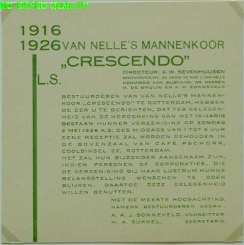 Van Nelle's mannenkoor “ Crescendo” 1916 - 1926