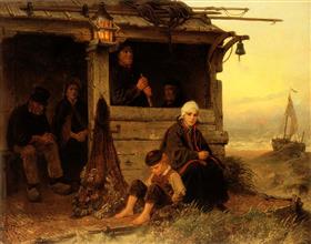 Vissersfamilie op de uitkijk