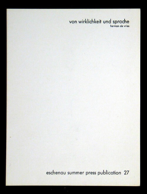 the eschenau summer press publications nr. 27. herman de vries: von wirklichkeit und sprache