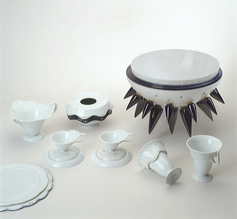 Zonder titel (vrouw met glaswerk van Borek Sipek)