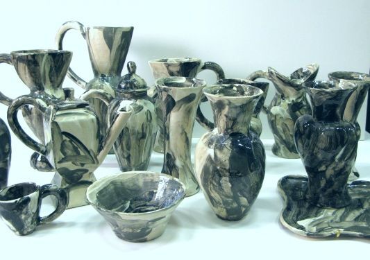 Twenty pieces. In black and white light.