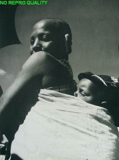 Vrouw met kind in draagband op rug