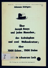 Über Joseph Beuys und jeden Menschen, das Erdtelephon und zwei Wolkenkratzer; über 7000 Eichen, 7000 Steine und ein schwarzes Loch : ein Vortrag, Hamburg 5. Juni 1982 Beuys, Joseph