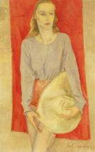 Vrouw tegen rode achtergrond