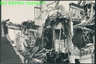 Gesloopt huis met tussen het puin een toiletpot