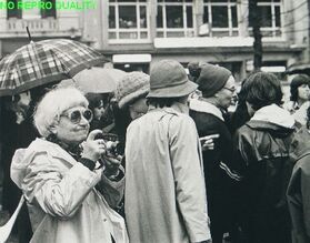 Eva Besnyö aan het werk tijdens een solidariteitsdemonstratie voor de internationale abortusstrijd