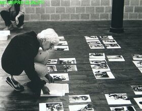 Eva Besnyö aan het werk bij de Nederlandse Kunststichting