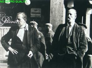 Mannen voor een café