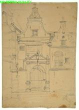 Huis met trapgevel en stoeptrap rechts