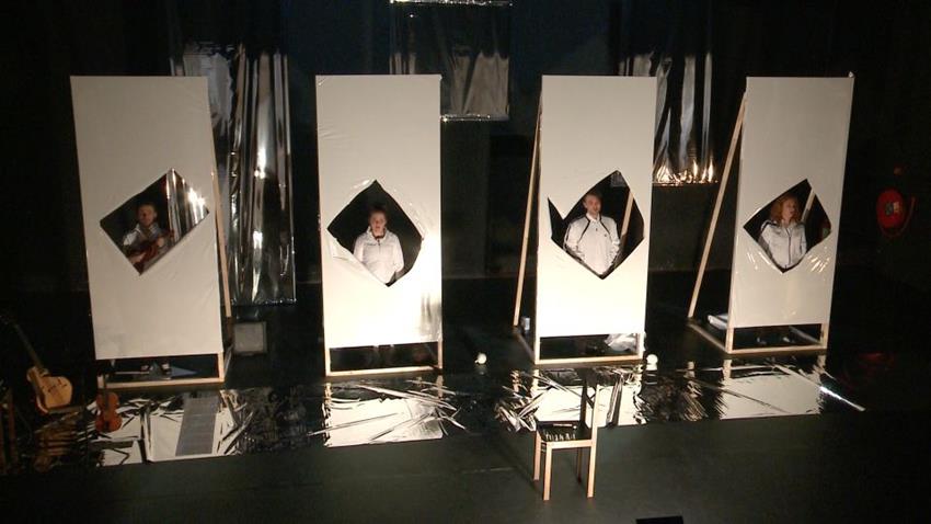 The ZERO movement and exhibition was the inspiration for the performance, and is embodied by song and the perforation of canvasses.. With three young singers and a musician who studied classical violin but mastered jazz improvisations as a guitarist, director Marcel Sijm developed a performance with music by Richard Strauss, Francis Poulenc, John Adams, and Henry Purcell.