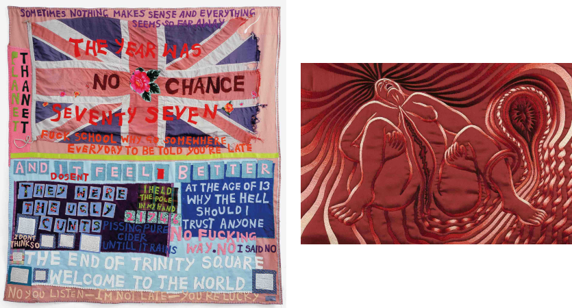 The exhibition explores the role of textiles in art through six themes: ‘Subversive Stitch’, about, among other things, resistance to textiles as ‘women's work’, ‘Fabric of Everyday Life’, with personal stories and lived experiences, ‘Borderlands’, about physical and invisible borders, ‘Bearing Witness’, with textiles as social and sociopolitical commentary, ‘Wound and Repair’, textiles as a restorative and healing medium, and ‘Ancestral Threads’, about the lives and techniques of ancestors and alternative knowledge systems.