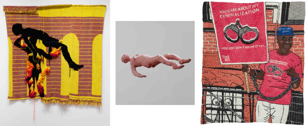Pacita Abad, Magdalena Abakanowicz, Igshaan Adams, Ghada Amer, Arpilleristas, Mercedes Azpilicueta, Kevin Beasley, Sanford Biggers, Louise Bourgeois, Diedrick Brackens, Jagoda Buić, Margarita Cabrera, Feliciano Centurión, Judy Chicago, Myrlande Constant, Cian Dayrit, Tracey Emin, Gee’s Bend/Lorraine Pettway, Jeffrey Gibson, Antonio Jose Guzman en Iva Jankovic, Harmony Hammond, Sheila Hicks, Nicholas Hlobo, Yee I-Lann, Kimsooja, Acaye Kerunen, José Leonilson, Tau Lewis, Ibrahim Mahama, Teresa Margolles, Georgina Maxim, Małgorzata Mirga-Tas, Violeta Parra, Antonio Pichillá Quiacaín, Faith Ringgold, LJ Roberts, Zamthingla Ruivah, Hannah Ryggen, Tschabalala Self, Mounira Al Solh, Angela Su, Lenore Tawney, T. Vinoja, Cecilia Vicuña, Billie Zangewa, and Sarah Zapata.