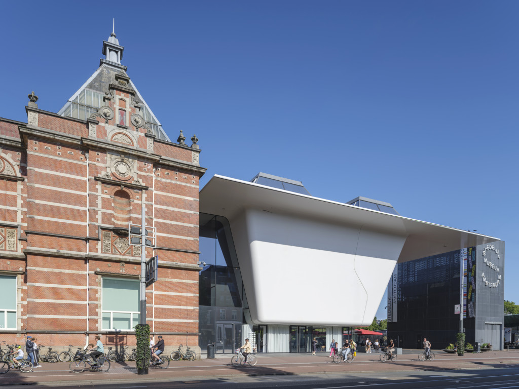 Stedelijk Museum Amsterdam, the original building (A.W. Weissman, 1895) and the new building (designed by Benthem Crouwel Architects). Photo: Ossip van Duivenbode