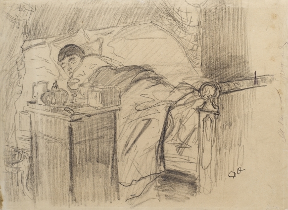 Zieke dame in bed/ verso: Berglandschap