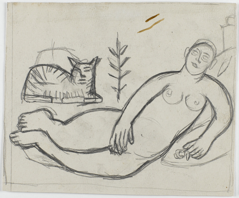 Brood, met hoofd buiten door het raam, schets