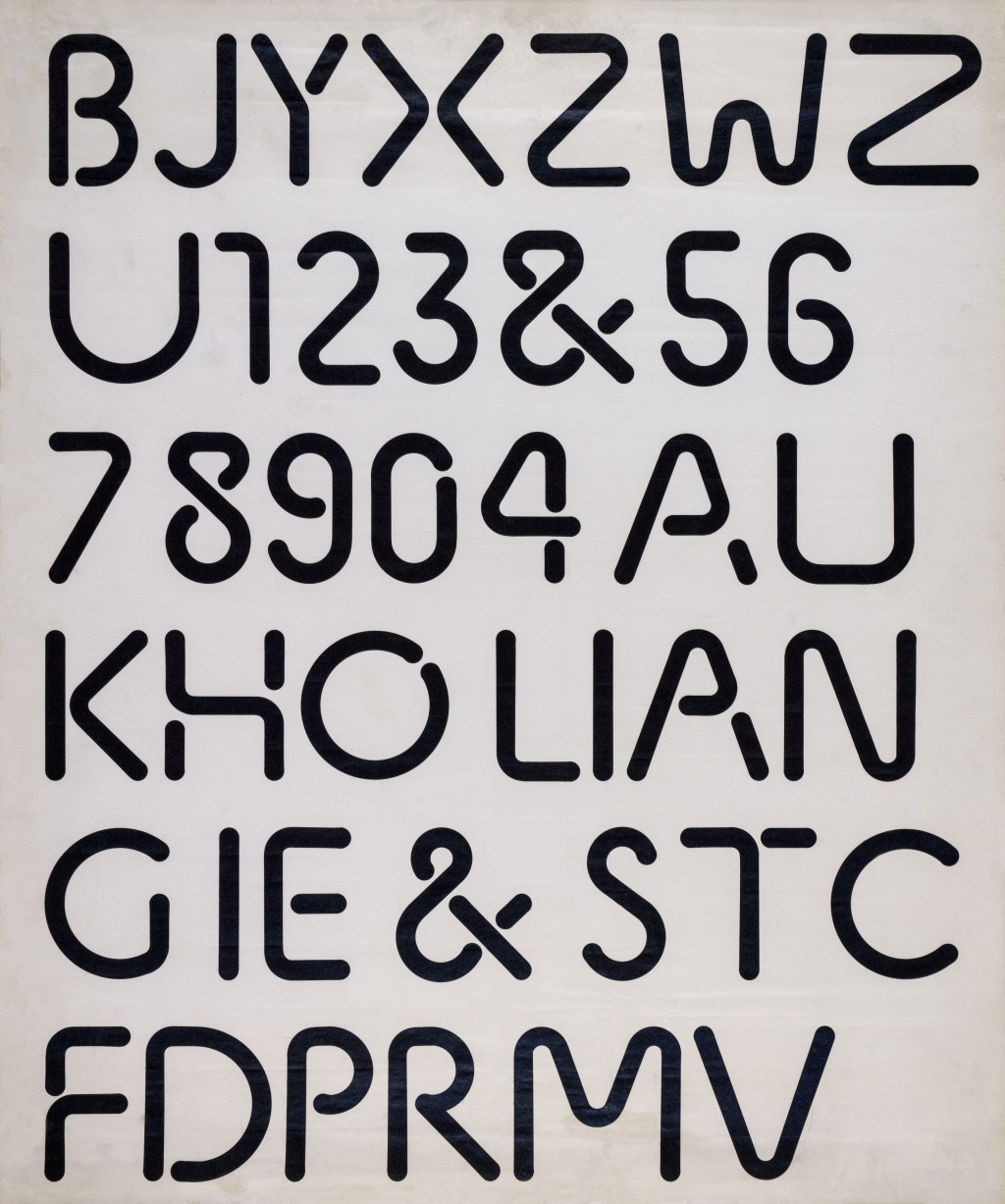 Kho Liang Ie (toegeschreven), affiche met ontwerp voor een lettertype, begin jaren 1970. Archief Kho Liang Ie. Foto: Hans Bol